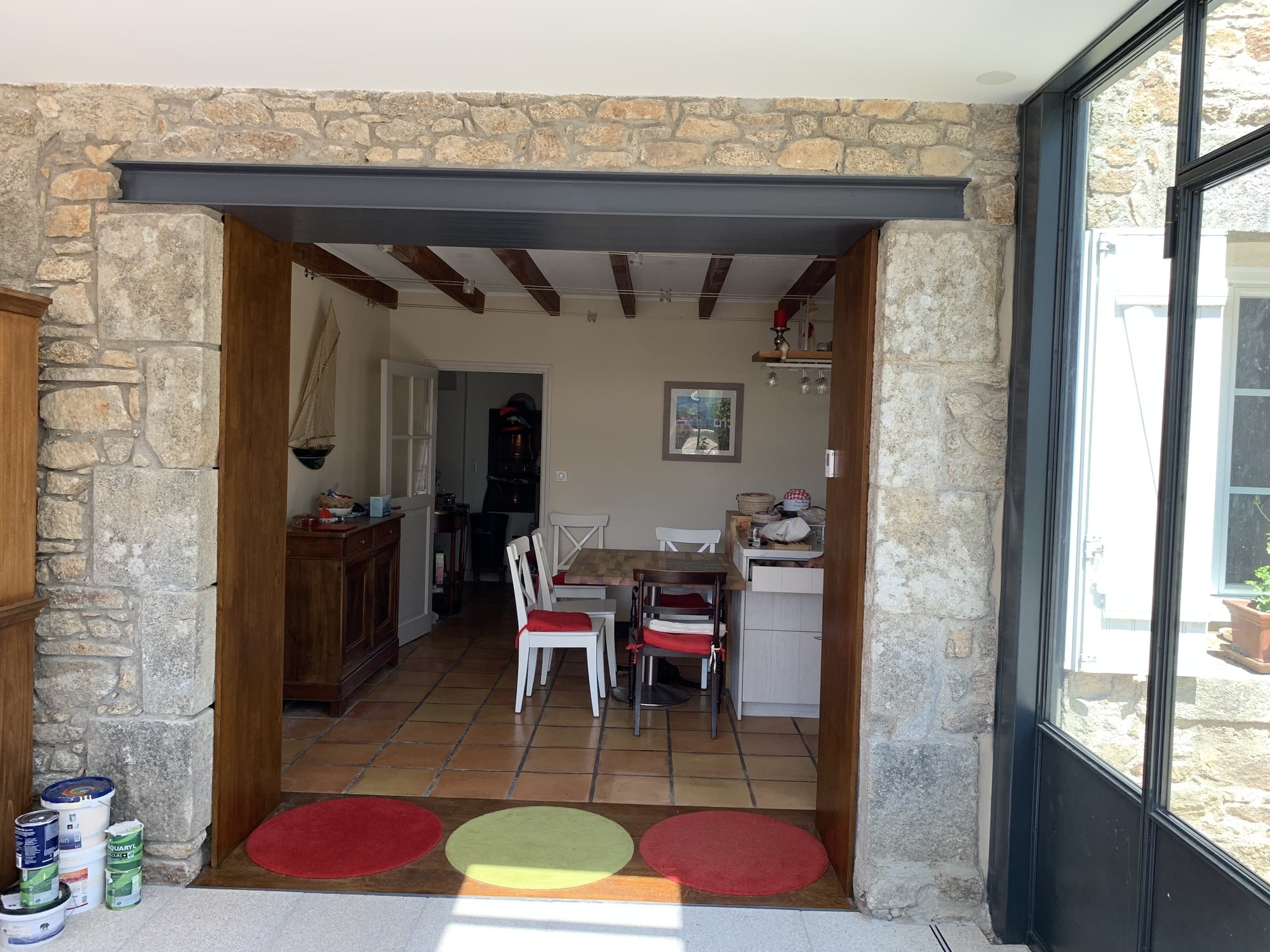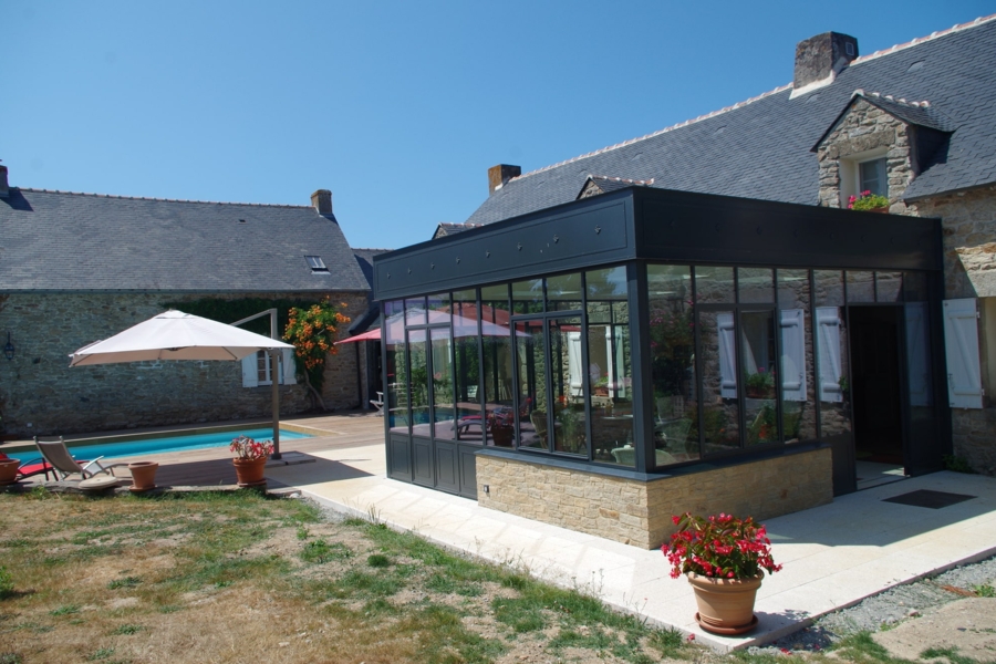 Afin de ne pas dénaturer cette magnifique longère en pierres, parti a été pris de jouer la transparence.