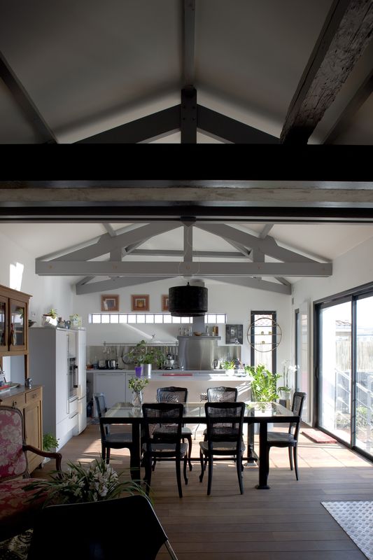 La problématique était de rendre une maison sombre et peu pratique en un espace de vieconvivial largement vitré sur un petit jardin vivant.