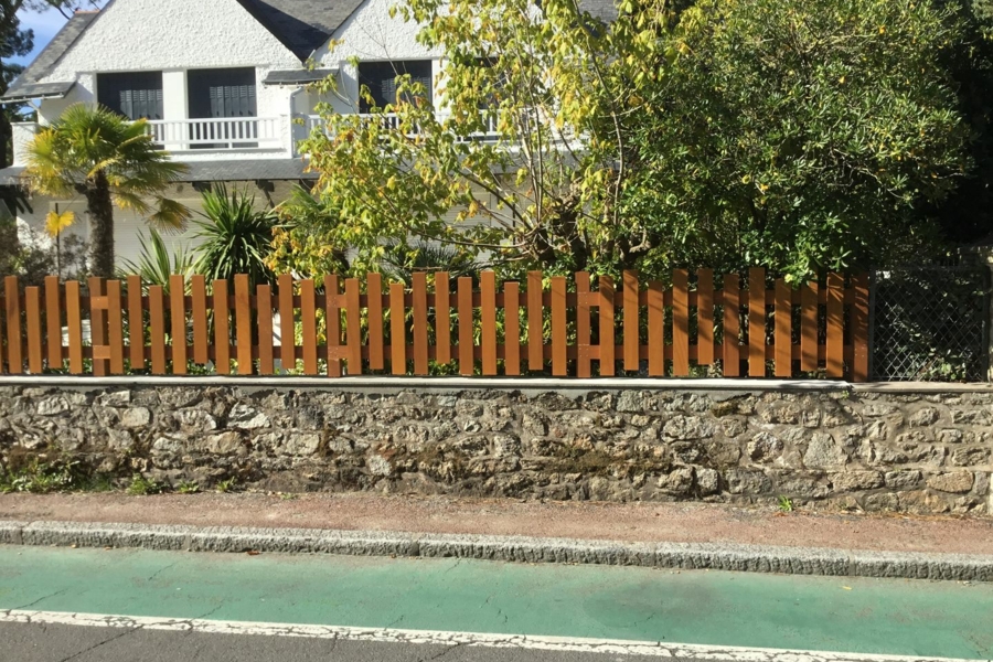 Une clôture bois, dans le style de ce beau quartier, enveloppe cette villa de charme.