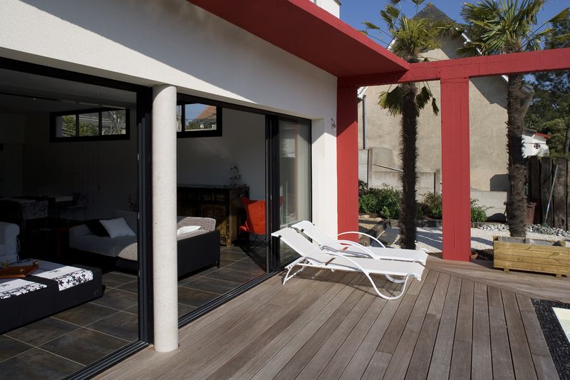 Le toit de l'extension est rendu accessible du 1 er étage de la maison existante.