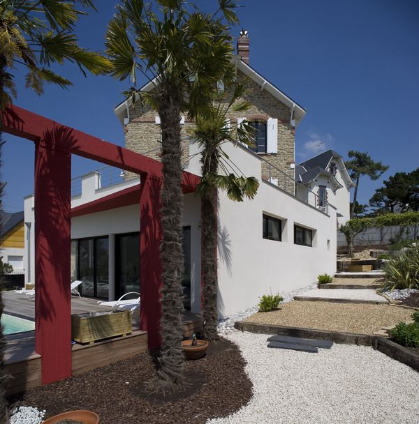 Sur un terrain accidenté à 200 m de la mer, les maîtres d'ouvrage propose d'étendre leur maison d'habitation.