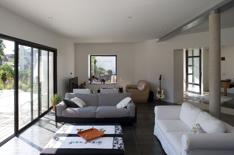 L'architecture de l'extension proposée est contemporaine et s'imbrique parfaitement dans la maison ancienne pour ne former qu'une entité. L'extension est largement ouverte à l'ouest, une terrasse et une piscine prolongent l'espace intérieur aux beaux jours.