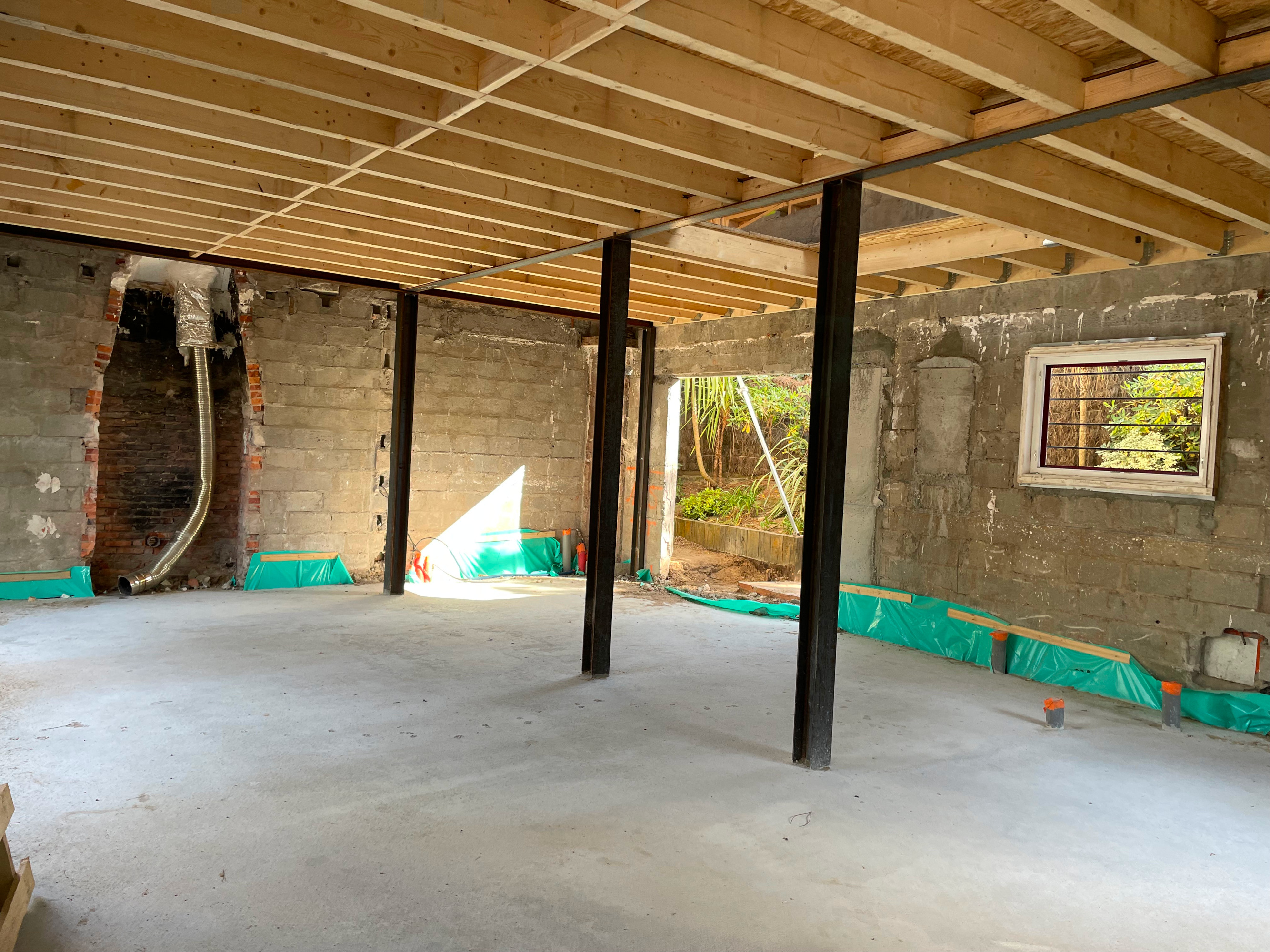 Une structure métallique a été créée à l'intérieur de la maison existante afin de recevoir l'étage en ossature bois.