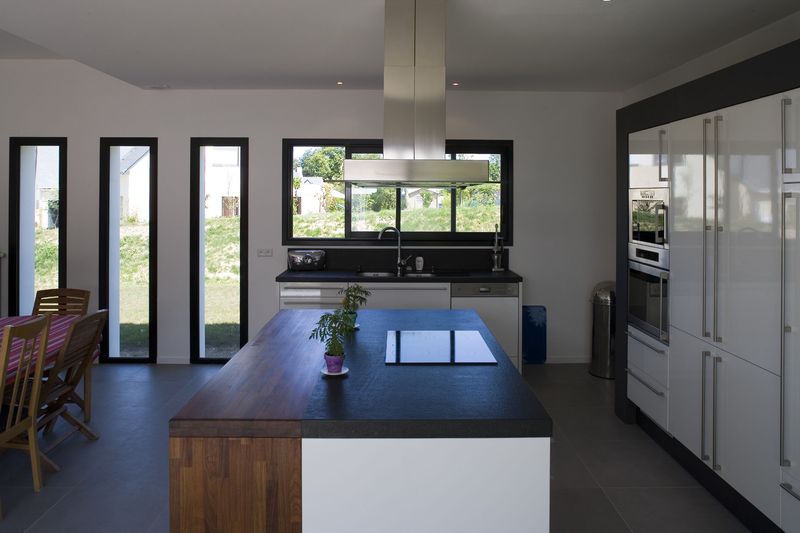 La maison, d'influence "Arts Déco" s'ouvre généreusement au sud, tandis que des lames de Lumière percent les façades au nord.